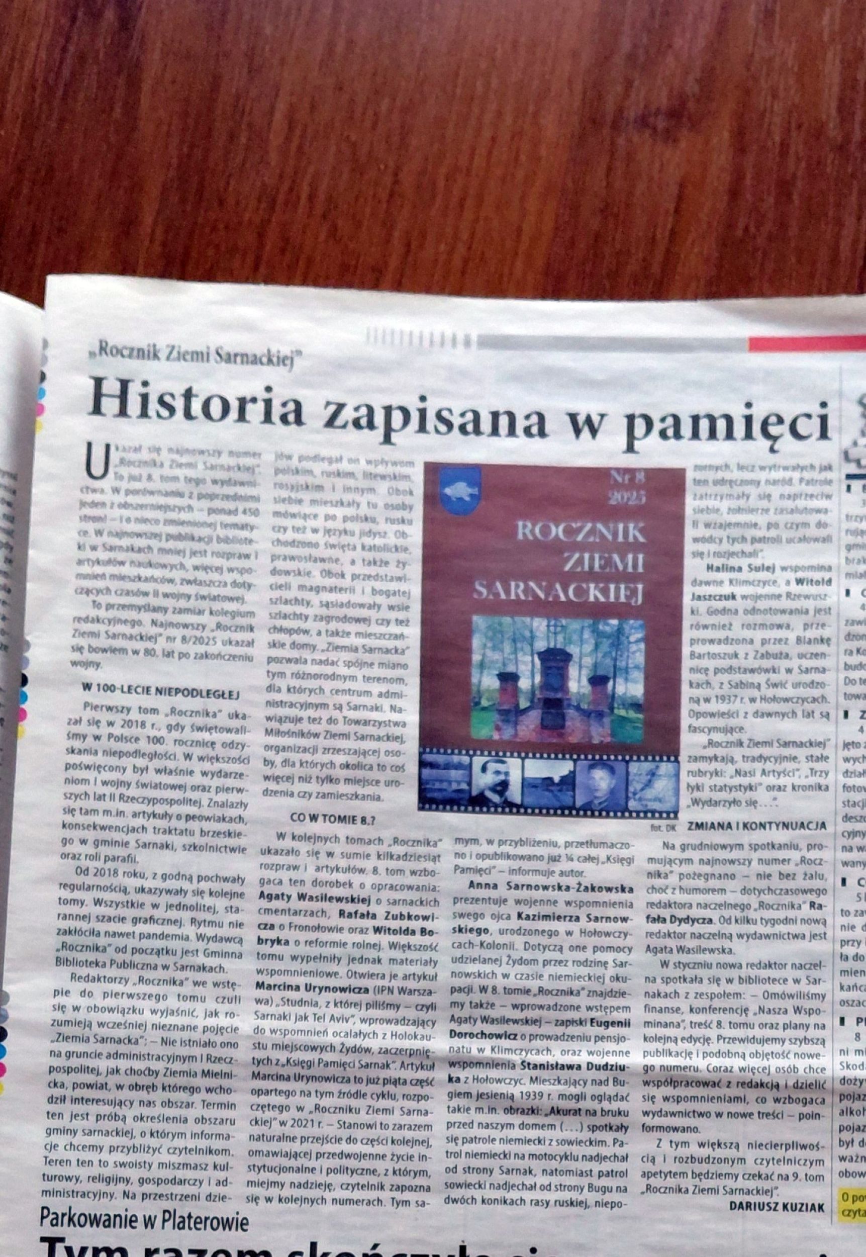 W bieżących numerach wymienionych czasopism można znaleźć między innymi informacje o naszym Roczniku Ziemi Sarnackiej, a także relację z XIII Memoriału Piotra Nowakiewicza, który odbył się w ubiegłym tygodniu w sarnackiej szkole.